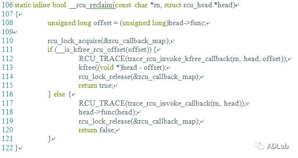 注意代码中第2879行,函数__rcu_reclaim()实现如下: