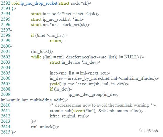 用户程序断开TCP连接时,内核里使用 ip_mc_drop_socket()函数进行回收。