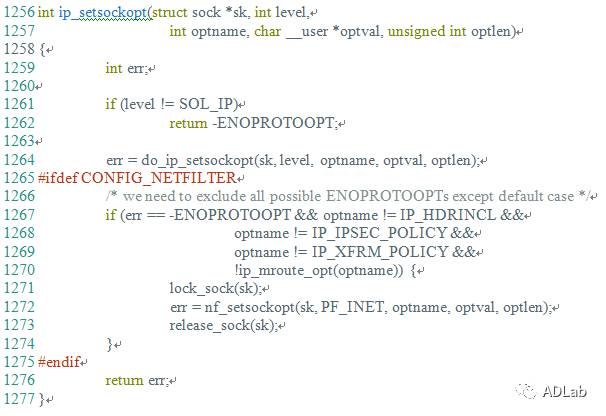 然后进入ip_setsockopt()函数,调用 do_ip_setsockopt()函数(1264行代码)。