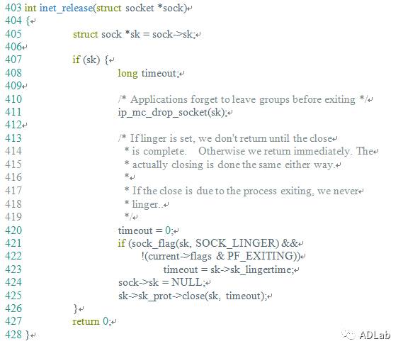 当断开TCP连接时,内核通过sock_close()函数直接调用sock_release()来实现断开功能,该函数会清空ops,更新全局 socket 数目,更新 inode 引用计数。随后进入到 inet_release()函数调用 tcp_close()函数来最终关闭 sock。