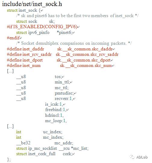 其中sk.__sk_common.skc_rcv_saddr对于组播而言,只接收该地址发来的组播数据,对于单播而言,只从该地址所代表的网卡接收数据;mc_ttl为组播的ttl;mc_loop表示组播是否发向回路;mc_index表示组播使用的本地设备接口的索引;mc_addr表示组播源地址;mc_list为组播列表。